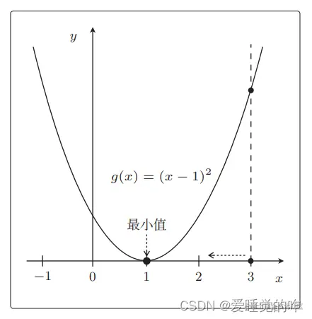 所以只要向与导数的符号相反的方向移动 x,g(x) 就会自然而然地沿着最小值的方向前进了。也就是自动更新参数。