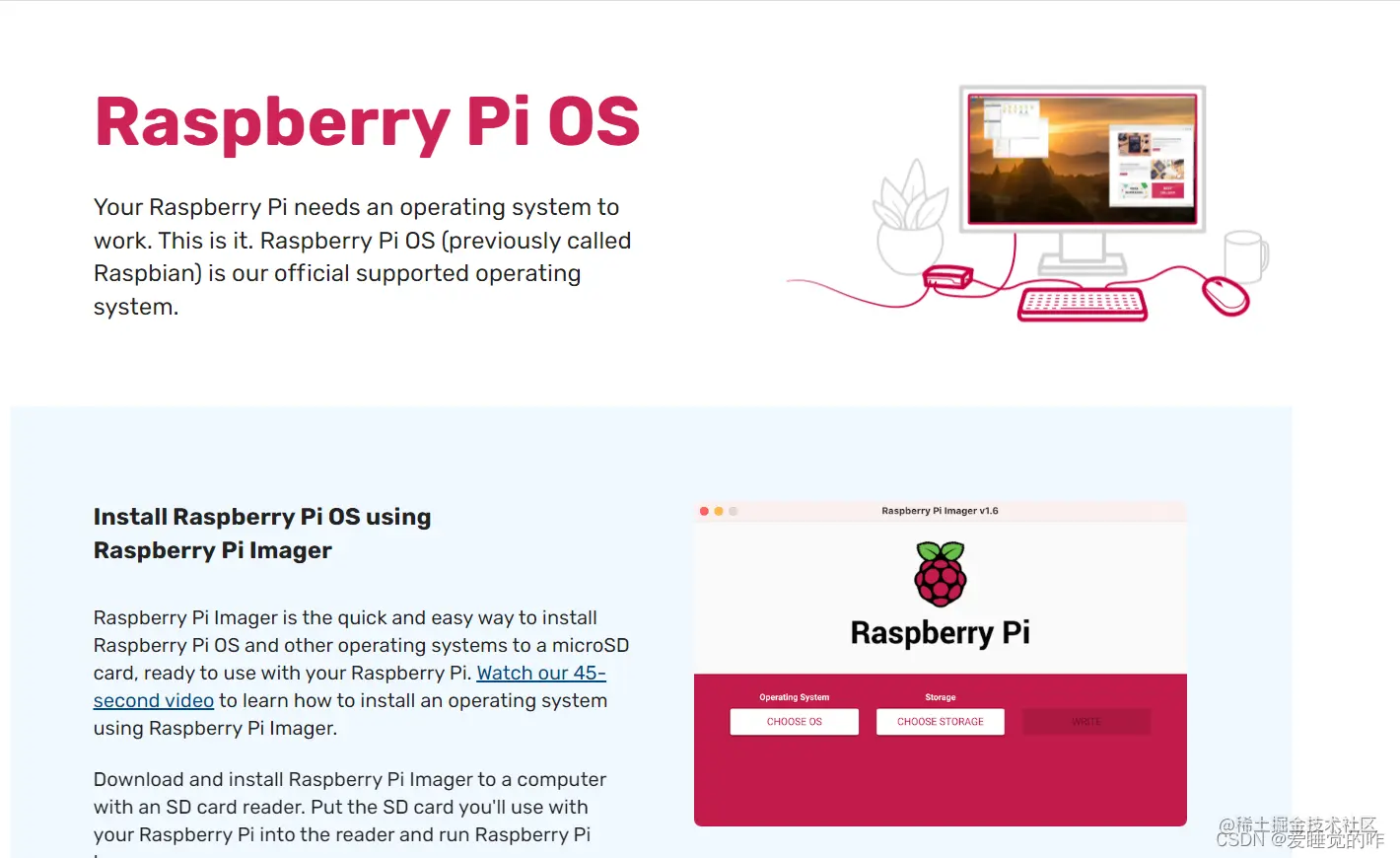 烧录树莓派系统你需要以下工具:一个SD卡(推荐16GB以上)、一个读卡器、一个能联网的笔记本电脑。首先在笔记本电脑下载烧录工具,烧录的方法有很多,这里推荐大家使用官方烧录工具Raspberry Pi Imager,下载直接在树莓派官网上就能找到。