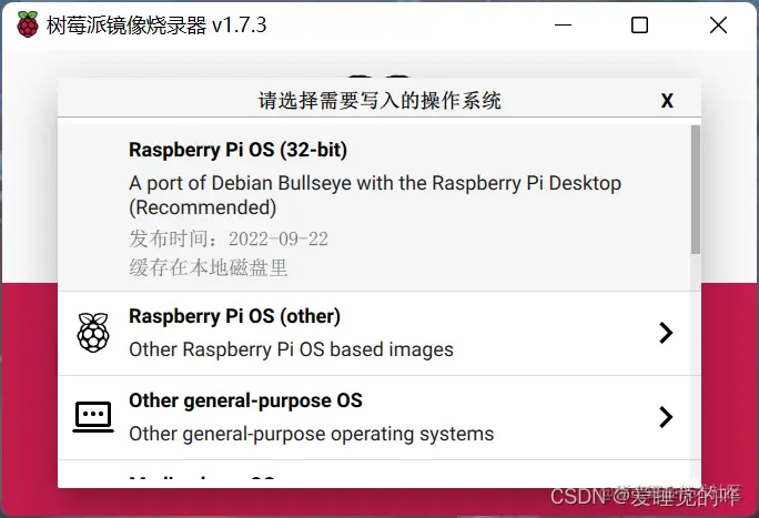 在左侧选择需要的操作系统,右侧选择储存卡,操作系统推荐Raspberry Pi OS(32-bit) ,存储卡就选择刚刚插入的SD卡。如果电脑没有识别到你的SD卡,把SD卡拔下插紧点,不行用手按着。当前两个选好之后,你会发现烧录按钮已经亮起来了,点击烧录,剩下的就是等待烧录完成了。