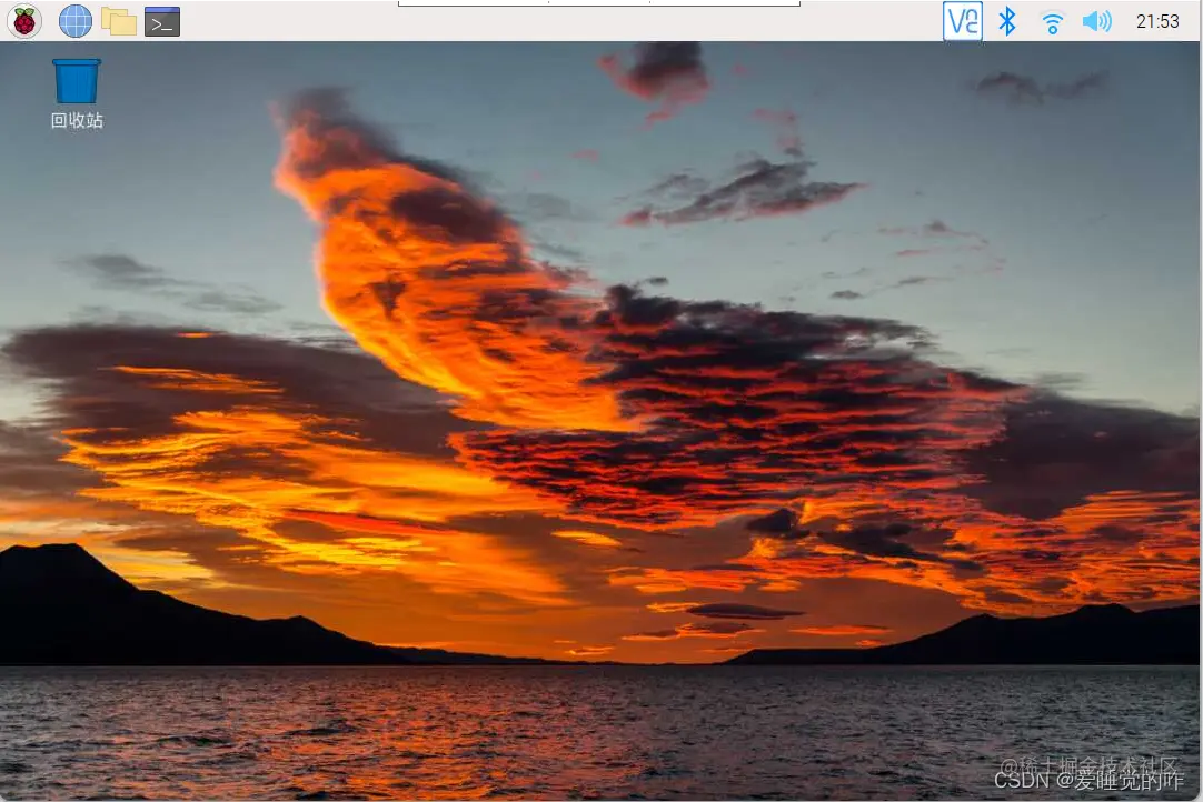 第一次开机会比较缓慢,耐心的等一会。第一次还会有各种首选项,比如说国家语言、账号密码等,只要按着他的提示选择就可以,不必修改配置,默认树莓派已经将配置调整至最优。第一次开机你将看到这个界面:
