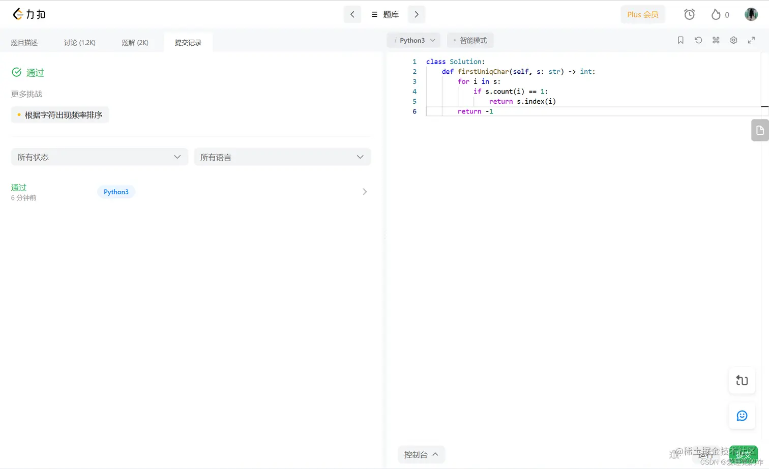 给定一个字符串 s ,找到 它的第一个不重复的字符,并返回它的索引 。如果不存在,则返回 -1 。