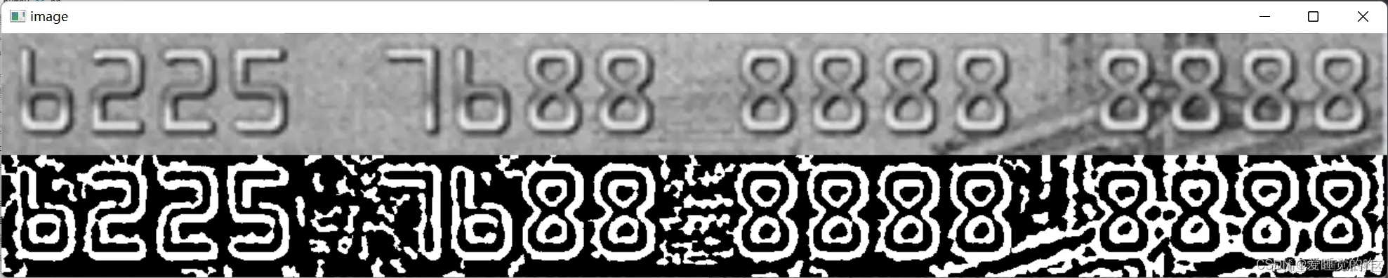 识别银行卡可算是Opencv的经典项目了,尤其是模板匹配,算得上是计算机视觉的精髓所在了。通过这个案例对二值化、轮廓检测、形态学变化腐蚀膨胀、开运算闭运算、礼帽黑帽有所了解,并能够组合在一起运算,算得上有所进步。