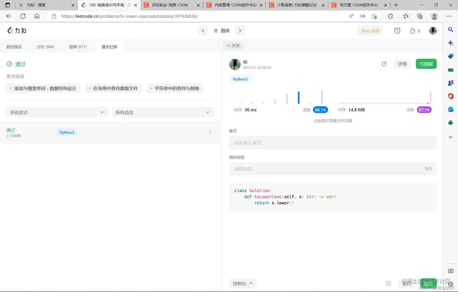 本专栏主要记录力扣的刷题记录,备战蓝桥杯,供复盘和优化算法使用,也希望给大家带来帮助,博主是算法小白,希望各位大佬不要见笑,今天要分享的是——《力扣刷题记录——709. 转换成小写字母、771. 宝石与石头、704. 二分查找》。