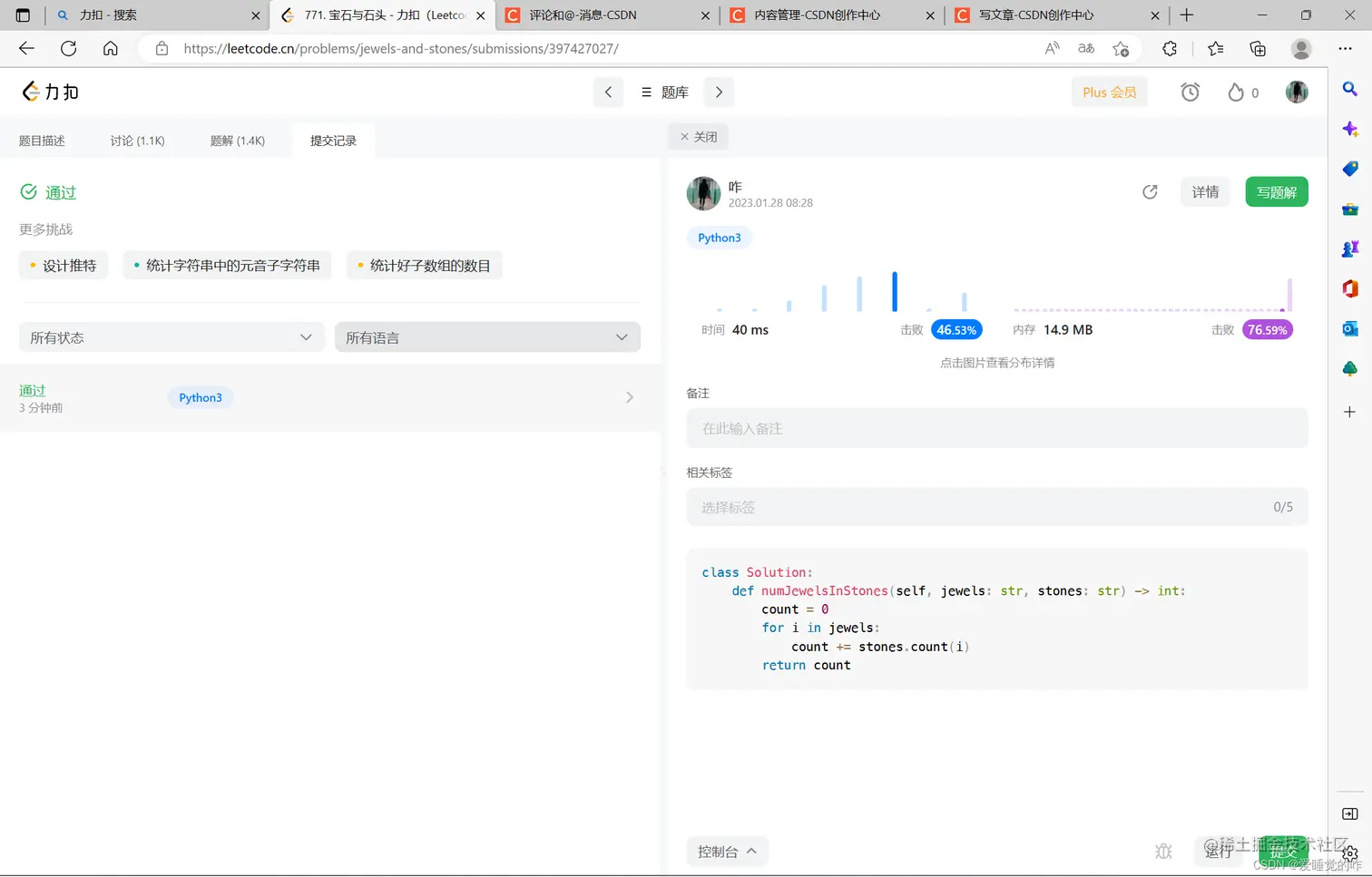 jewels代表石头中宝石的类型,另有一个字符串stones代表你拥有的石头。stones中每个字符代表了一种你拥有的石头的类型,你想知道你拥有的石头中有多少是宝石。字母区分大小写,因此