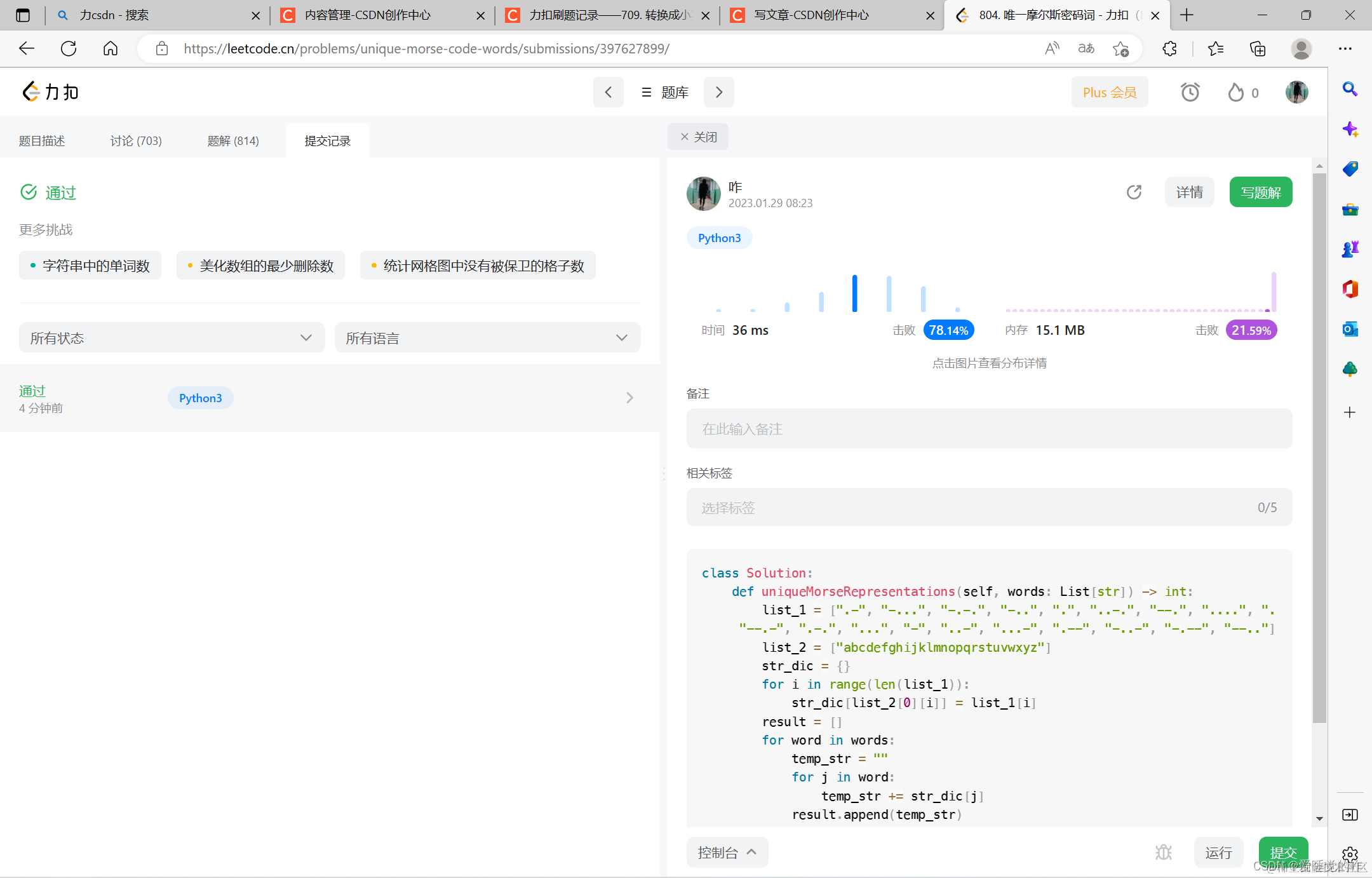 本专栏主要记录力扣的刷题记录,备战蓝桥杯,供复盘和优化算法使用,也希望给大家带来帮助,博主是算法小白,希望各位大佬不要见笑,今天要分享的是——《力扣刷题记录——804. 唯一摩尔斯密码词、806. 写字符串需要的行数、824. 山羊拉丁文》。