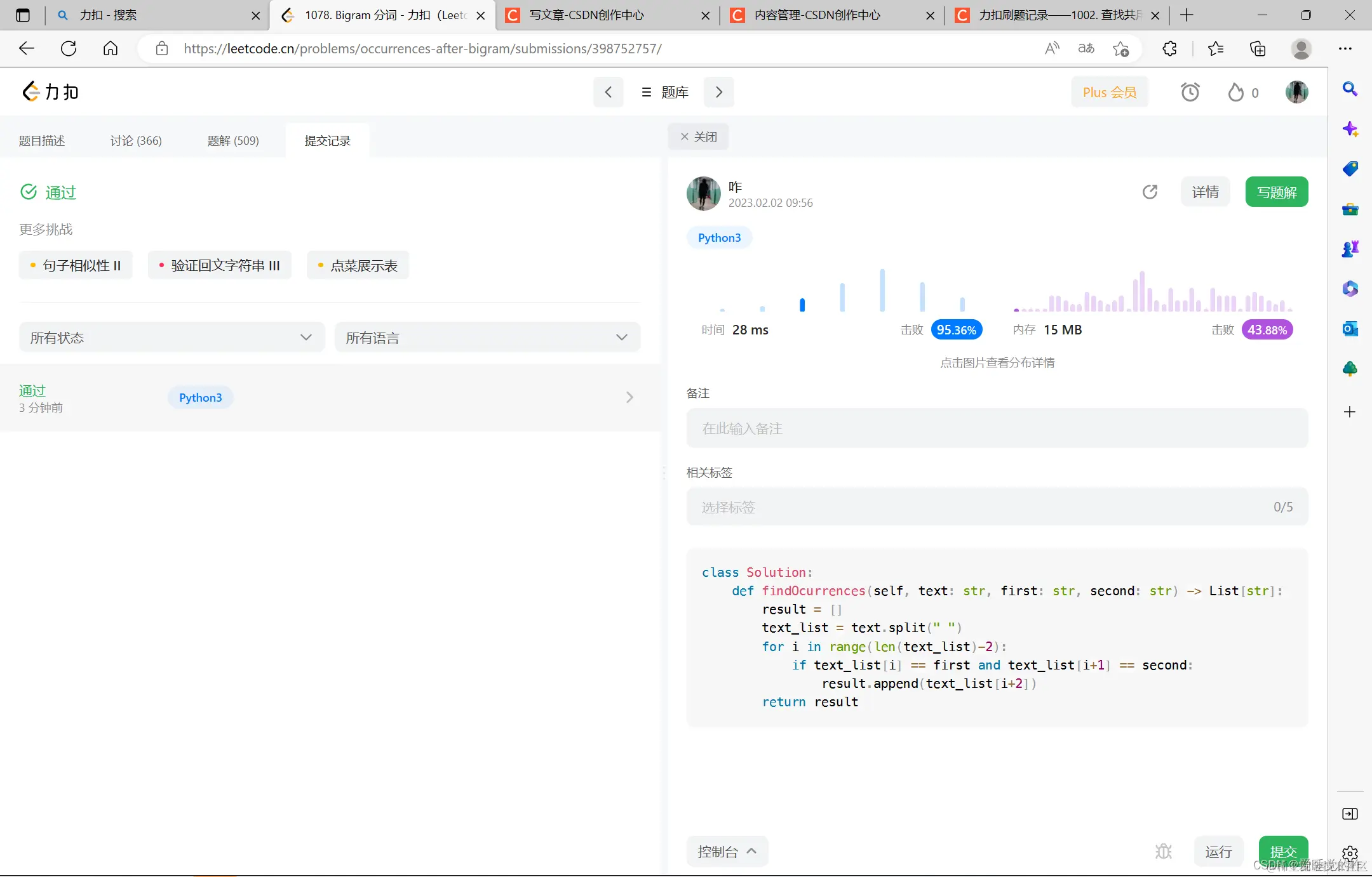 本专栏主要记录力扣的刷题记录,备战蓝桥杯,供复盘和优化算法使用,也希望给大家带来帮助,博主是算法小白,希望各位大佬不要见笑,今天要分享的是——《力扣刷题记录——1078. Bigram 分词、1207. 独一无二的出现次数 、1089. 复写零》。