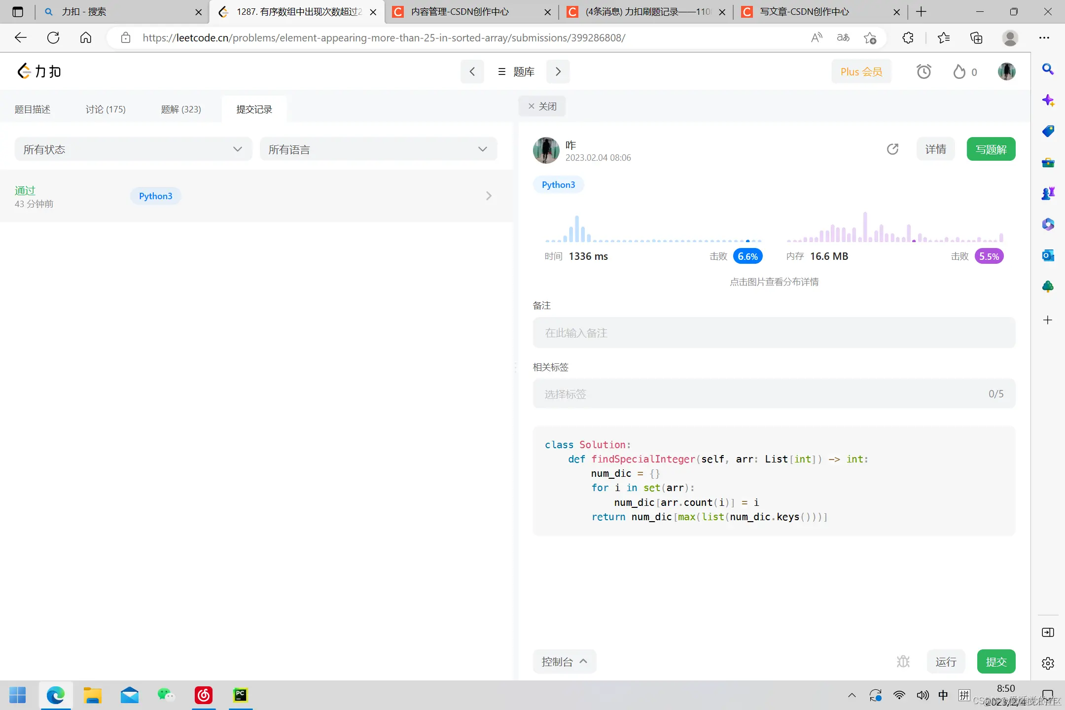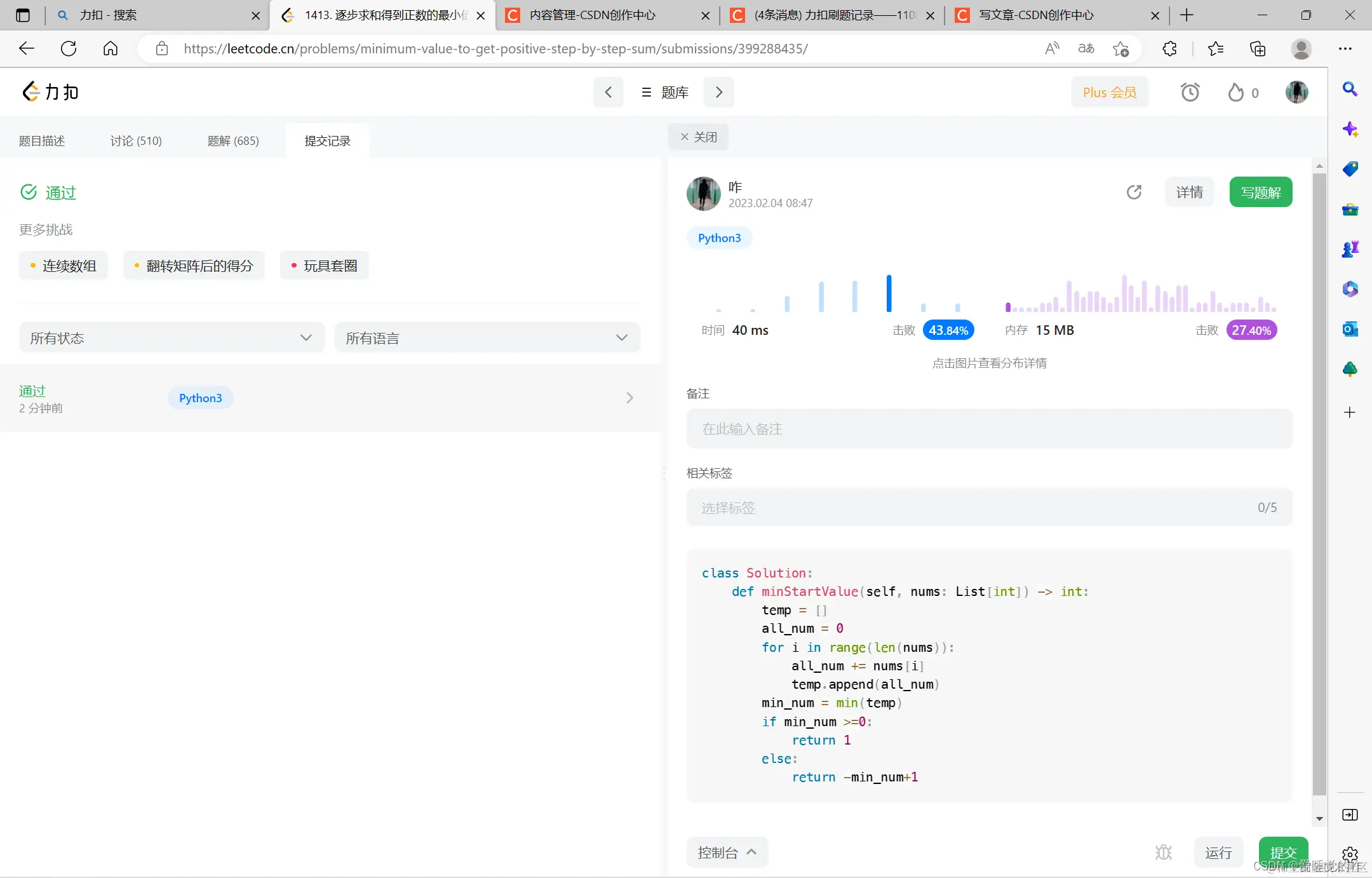本专栏主要记录力扣的刷题记录,备战蓝桥杯,供复盘和优化算法使用,也希望给大家带来帮助,博主是算法小白,希望各位大佬不要见笑,今天要分享的是——《力扣刷题记录——1287. 有序数组中出现次数超过25%的元素、1299. 将每个元素替换为右侧最大元素 、1413. 逐步求和得到正数的最小值 》。 不知不觉刷了100道力扣题啦!接下来转刷蓝桥杯的真题!
