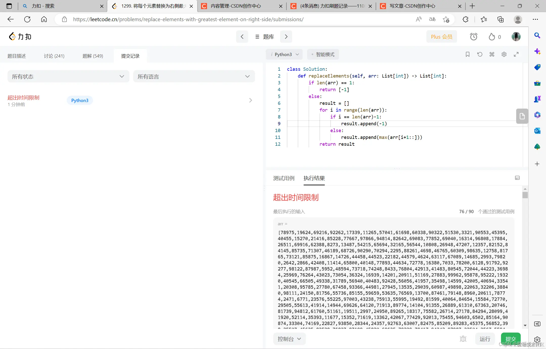 超出时间限制,arr[i+1::]那里有很大问题,每一次都要开辟新的空间。逆向比较,并且使用动态规划的思想求解。