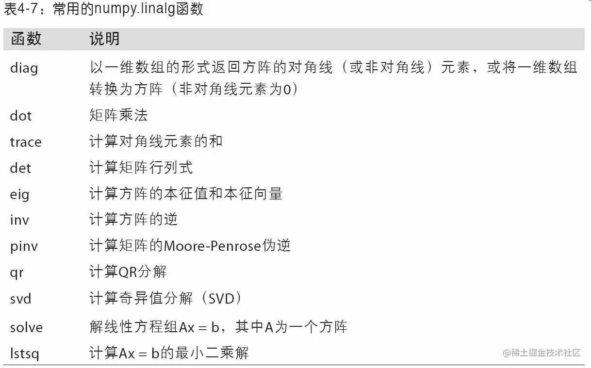 表4-7中列出了一些最常用的线性代数函数。