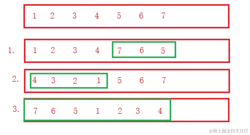 向右轮转 3 步: [5,6,7,1,2,3,4]