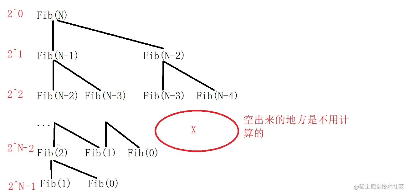计算次数是 2^0* 2^1* 2^2* ...* 2^N-2* 2^N-1 - X,这是一个等比数列,F(N) =2^N -1 -X ,