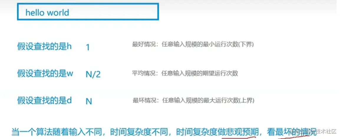 另外有些算法的时间复杂度存在最好、平均和最坏情况: