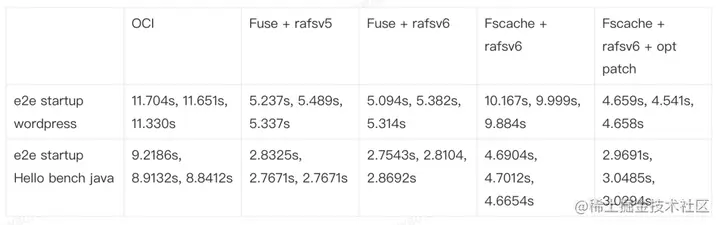 当容器镜像中存在大量文件时,频繁的文件操作会产生大量的 FUSE 请求,造成内核态/用户态上下文的频繁切换,造成性能瓶颈;龙蜥社区设计并实现了兼容内核原生 EROFS 文件系统的 Nydus RAFS(Registry Acceleration File System) v6 格式,相比于此前的格式,它具备块数据对齐,元数据更加精简,高可扩展性与高性能等优势。在镜像数据全部下载到本地的情况下,FUSE 用户态方案会导致访问文件的进程频繁陷出到用户态,并涉及内核态/用户态之间的内存拷贝,更进一步支持了 EROFS over FS-Cache 方案(Linux 5.19-rc1),当用户态 Nydusd 从远端下载 Chunk 后会直接写入 FS-Cache 缓存,之后容器访问时,能够直接通过内核态 FS-Cache 读取数据,而无需陷出到用户态,在容器镜像的场景下实现几乎无损的性能和稳定性,其按需加载阶段表现类似 FUSE 用户态实现,按需加载结束后与原生文件系统的性能相近,优于 FUSE 用户态实现。