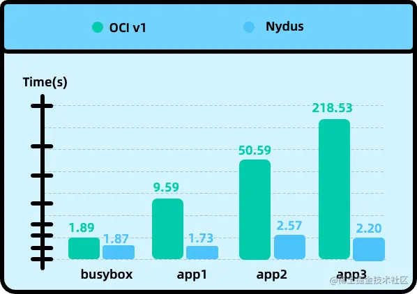 利用 Nydus 做镜像加速后,不同应用的启动时间都有了质的飞跃,能够在非常短的时间内拉起应用,满足云上快速伸缩的要求。