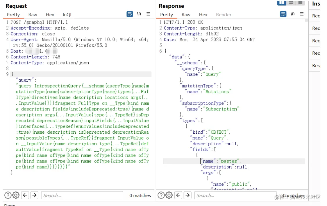 - 关闭内省查询:GraphQL 内省机制被用来获取服务器上定义的所有类型、字段、枚举等信息。攻击者可以利用这些信息了解服务器的数据结构和业务逻辑,从而进行进一步攻击。为了防范此类攻击,应该关闭或限制内省查询功能。