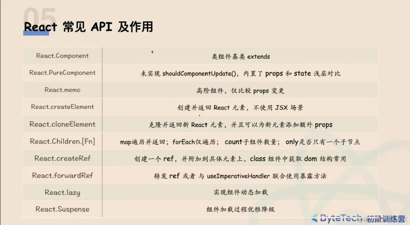 - 通信:props父子通信,redux & context组件信息共享。