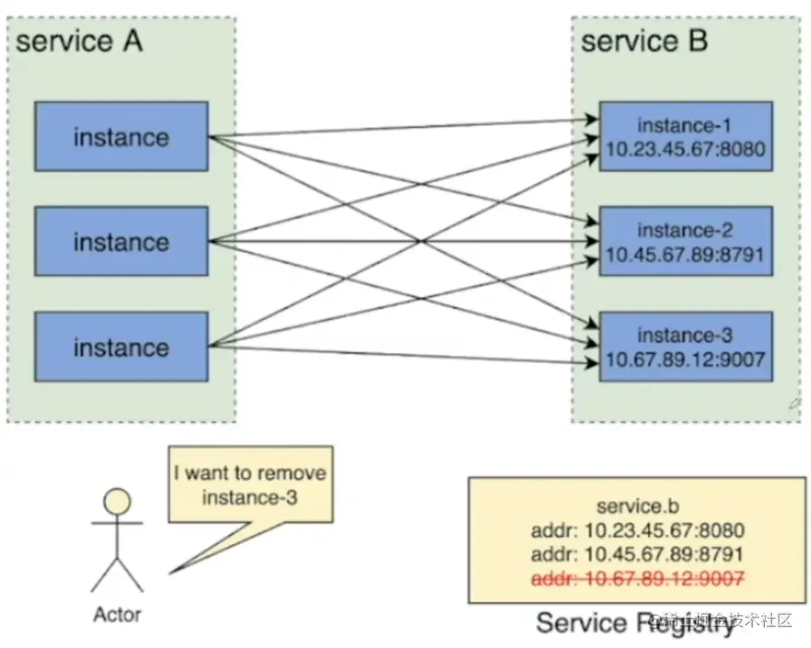 管理员想要下线服务B的实例三