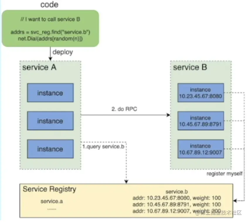- 建一个统一的服务注册中心,用于存储服务名到服务实例的映射(即哈希表)