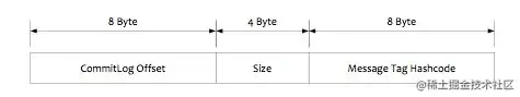 RocketMQ分布式消息队列的消息过滤方式有别于其它MQ中间件,是在Consumer端订阅消息时再做消息过滤的。RocketMQ这么做是在于其Producer端写入消息和Consumer端订阅消息采用分离存储的机制来实现的,Consumer端订阅消息是需要通过ConsumeQueue这个消息消费的逻辑队列拿到一个索引,然后再从CommitLog里面读取真正的消息实体内容,所以说到底也是还绕不开其存储结构。其ConsumeQueue的存储结构如下,可以看到其中有8个字节存储的Message Tag的哈希值,基于Tag的消息过滤正式基于这个字段值的。