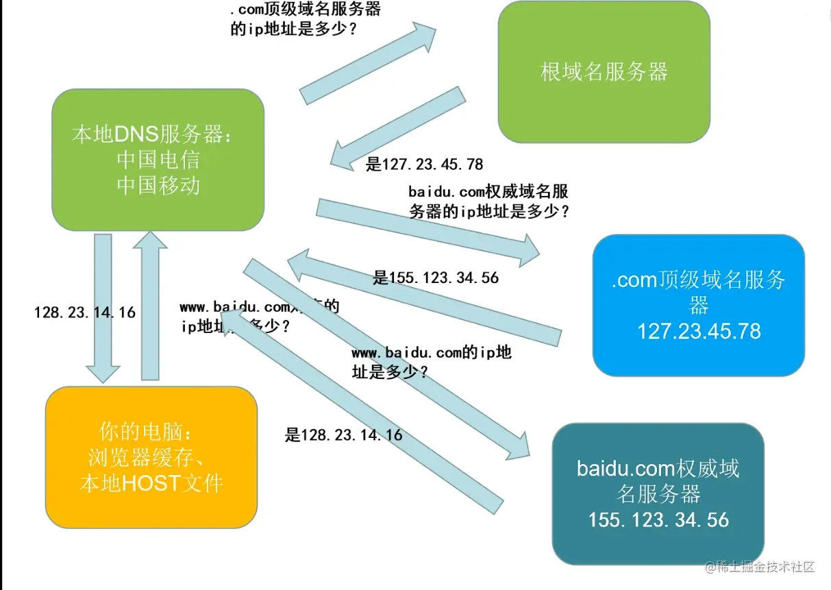 1、客户端检查其本地DNS缓存/浏览器缓存/本地HOST文件是否有匹配的IP地址。如果找到了匹配的IP地址,该IP地址将返回给客户端,该过程就完成了。