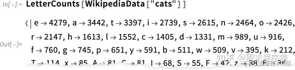 我们可以做的一个非常简单的事情就是取一个英语文本的样本,然后计算不同字母在其中出现的频率。因此,举例来说,这是计算维基百科上关于 “猫”(cat) 的文章中的字母:
