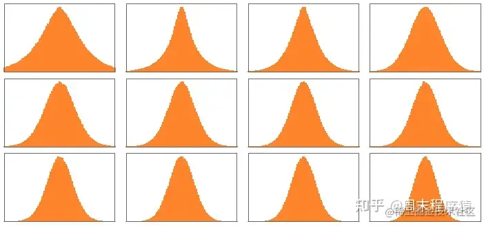 奇怪的是,尽管这些 “权重矩阵” 在不同的注意力块中看起来很相似,但权重的大小分布可能有些不同(而且不总是高斯的):