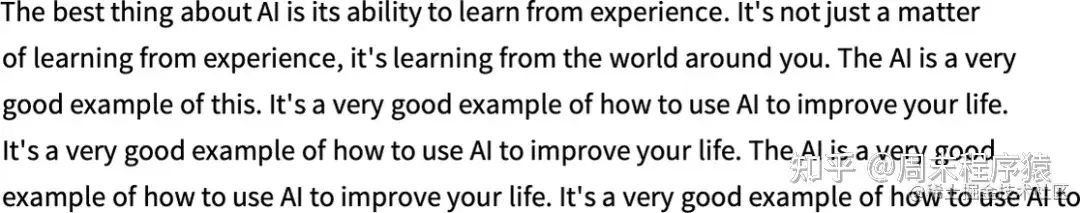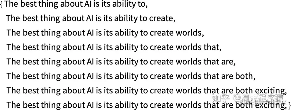 如果重复 “应用模型” —— 在每一步中加入概率最高的词(在此代码中被指定为模型的 “决定”),会发生什么: