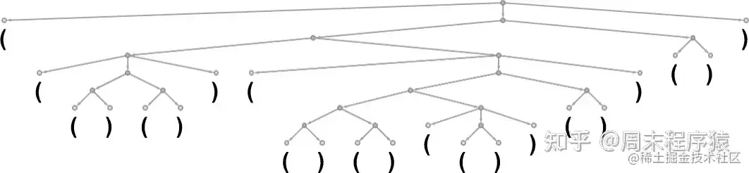 考虑一种由()和()序列组成的 “语言”,其语法规定括号应该总是平衡的,如解析树所表示的那样: