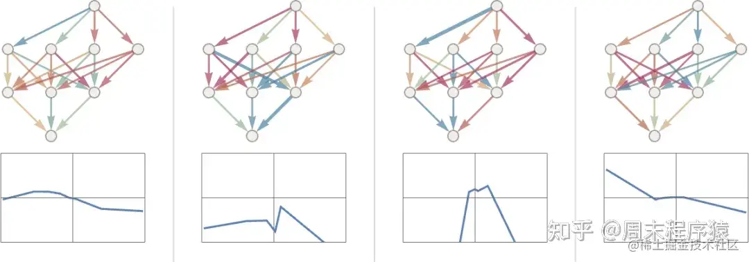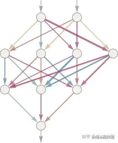 此外,ChatGPT 中的神经网的某些方面并不是最自然地被认为是由 “同质” 层组成的。例如,正如上面的图标摘要所示,在一个注意力区块中,有一些地方对传入的数据进行了 “多份拷贝”,然后每个拷贝经过不同的 “处理路径”,可能涉及不同数量的层,然后才重新组合。但是,虽然这可能是对正在发生的事情的一种方便的表述,但至少在原则上总是可以考虑 “密集地填入” 层,但只是让一些权重为零。