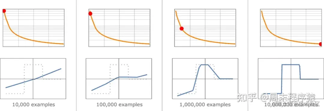 即使在我们之前讨论的看似简单的学习数字函数的案例中,我们发现我们经常不得不使用数百万个例子来成功训练一个网络,至少从头开始。那么,这意味着我们需要多少个例子来训练一个 “类人语言” 模型呢?似乎没有任何基本的 “理论” 方法可以知道。但是在实践中,ChatGPT 已经成功地在几千亿字的文本上进行了训练。