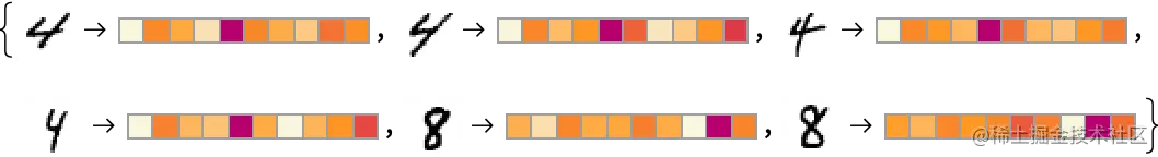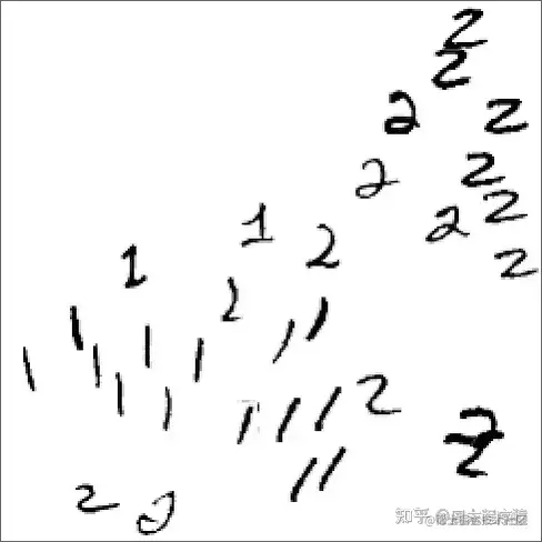 我们希望所有的 1 都 “被吸引到一个地方”,而所有的 2 都 “被吸引到另一个地方”。或者,换一种方式,如果一个图像在某种程度上 “更接近于 1”,而不是 2,我们希望它最终出现在 “1 的地方”,反之亦然。