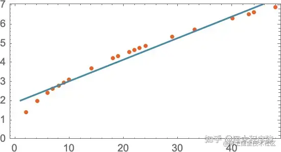 我们可以选择不同的直线。但这是平均来说最接近我们所给的数据的一条。而根据这条直线,我们可以估算出任何楼层的下降时间。