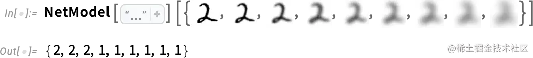 但这里到底发生了什么?比方说,我们逐步模糊一个数字。有一段时间,我们的函数仍然 “识别” 它,在这里是一个 “2”。但很快它就 “失去” 了,并开始给出 “错误” 的结果: