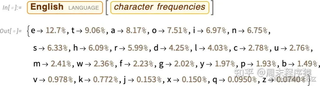 结果相似,但不一样(“o” 在 “dogs” 文章中无疑更常见,因为毕竟它出现在 “dog” 这个词本身)。尽管如此,如果我们采取足够大的英语文本样本,我们可以期待最终得到至少是相当一致的结果。