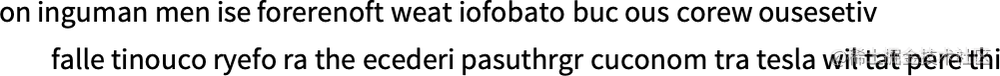 但现在让我们假设 —— 或多或少像 ChatGPT 那样 —— 我们处理的是整个单词,而不是字母。英语中大约有 40,000 个合理的常用词。通过查看大型英语文本语料库(比如几百万本书,总共有几千亿个单词),我们可以得到每个单词的常见程度的估计。利用这一点,我们可以开始生成 “句子”,其中每个词都是独立随机抽取的,其出现的概率与语料库中的相同。下面是我们得到的一个样本: