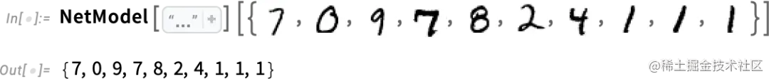 但最终的结果是,如果我们把一幅图像的像素值集合输入这个函数,就会得出一个数字,指定我们的图像是哪个数字。稍后,我们将讨论如何构建这样一个函数,以及神经网络的概念。但现在让我们把这个函数当作黑匣子,我们输入例如手写数字的图像(作为像素值的阵列),然后我们得到这些数字对应的数字: