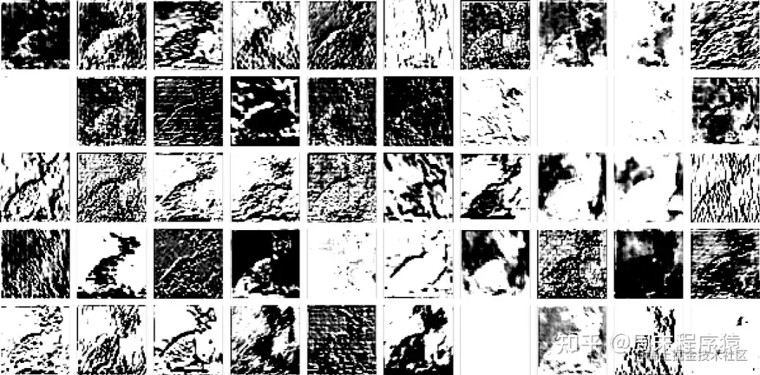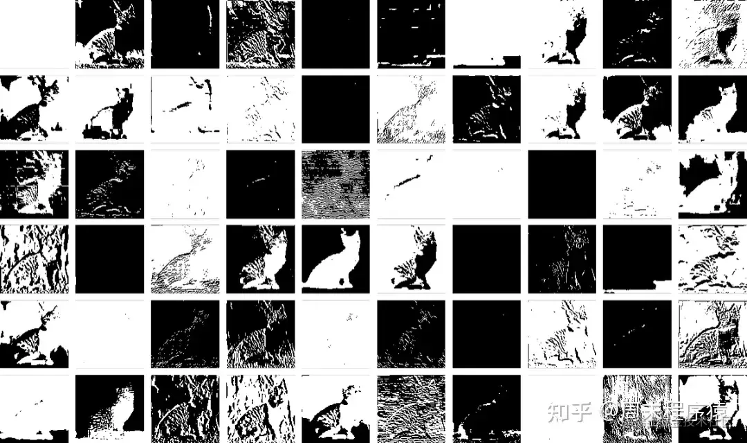 那么我们就可以用一组衍生图像来表示第一层神经元的状态 —— 其中许多图像我们可以很容易地解释为 “没有背景的猫” 或 “猫的轮廓” 等:
