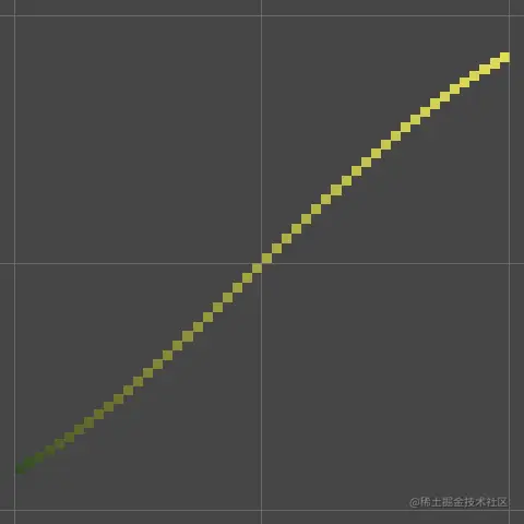 由于红色加绿色导致黄色,这将使点在左下角接近黑色时开始,当 Y 最初比 X 增加得更快时变为绿色,当 X 赶上时变成黄色,随着 X 增加得更快而略微变成橙色,最后在右上角接近亮黄色时结束。