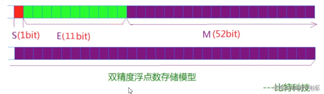 对于64位的浮点数,最高的1位是符号位S,接着的11位是指数E,剩下的52位为有效数字M。