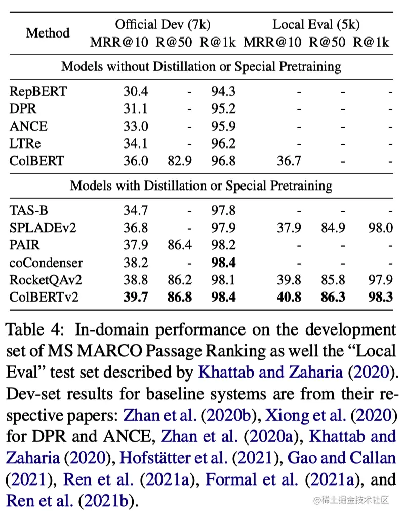 可以看到,无论是分布内还是分布外,ColBERTv2都取得了最好的表现。
