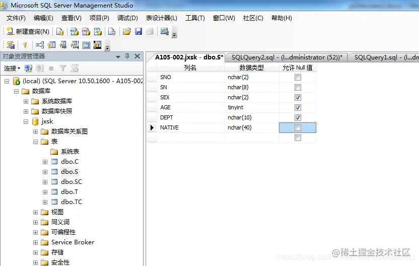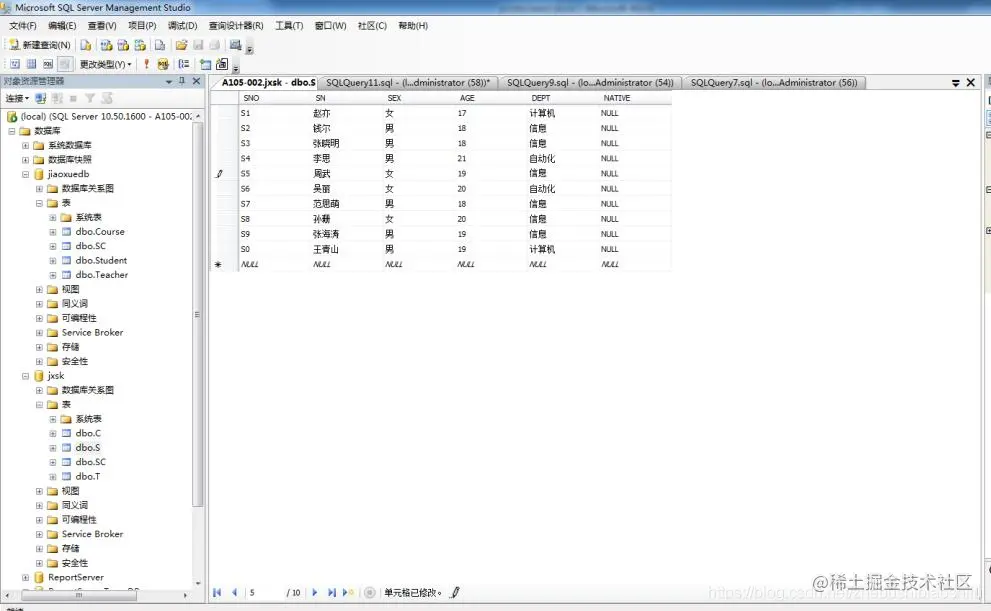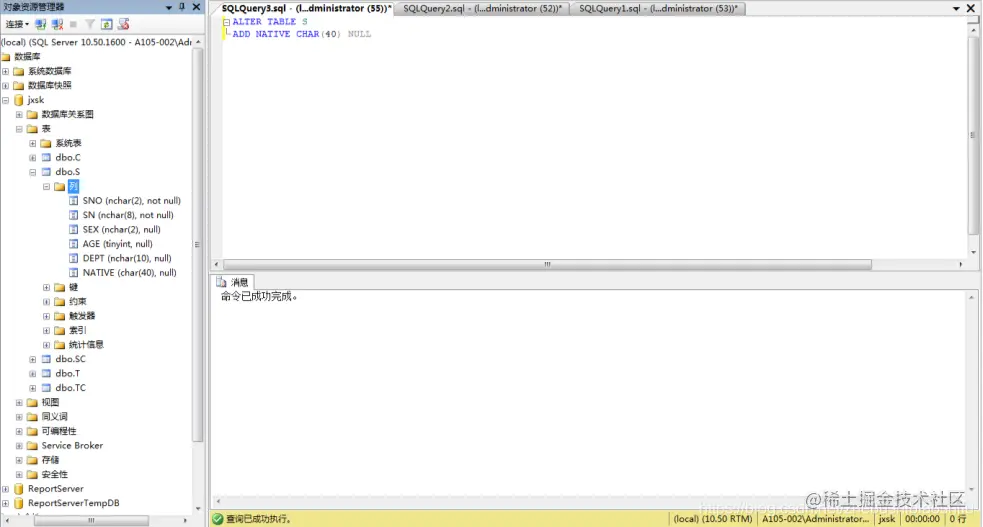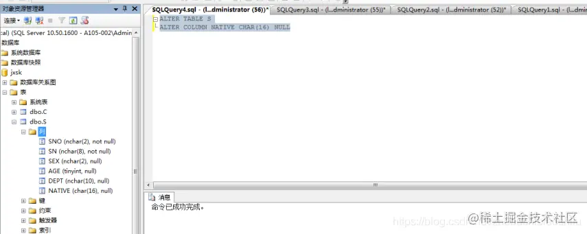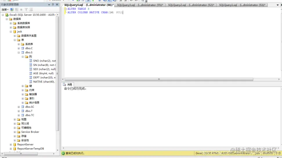 10 T-SQL修改数据库表S中的列NATIVE