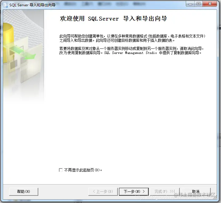 (2) 在“对象资源管理器”窗格中,选择“数据库”→“jxsk”并右击,在弹出的菜单中选择“任务”→“导入数据”,打开“SQL Serve 导入和导出向导”,如下图;