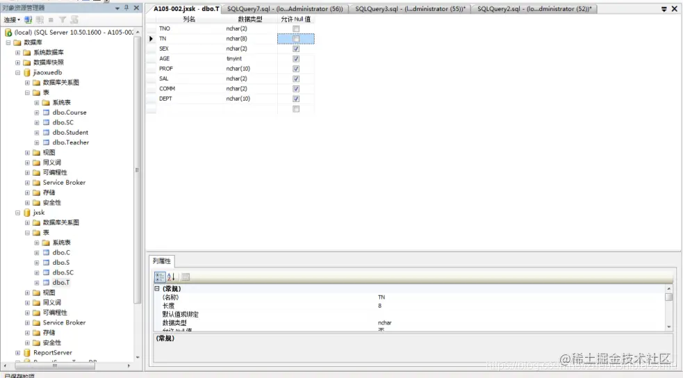 5 T-SQL创建数据库表TC