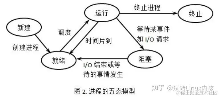 - 终止状态(Terminated):进程已经运行完成或被终止,等待操作系统回收其占用的资源。