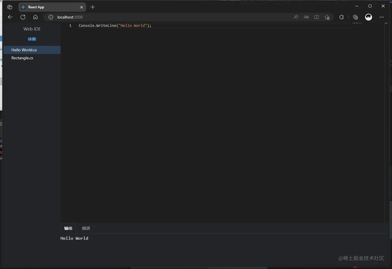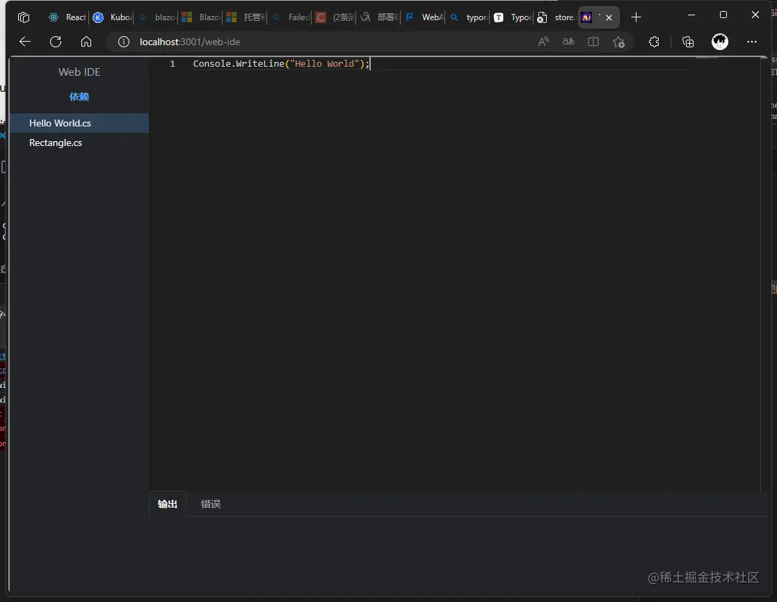 首先我们需要介绍一下这个在线编辑器,当前的在线编辑器支持c#的代码编译运行,并且无需后台服务,基于WebAssembly实现的在浏览器端去执行我们的c#代码,基于Roslyn提供的Api封装一套简单的编译,并且封装了js的支持,让嵌入的方式更简单。