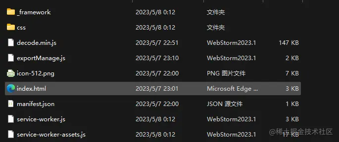 发布以后打开发布的文件夹,打开_framework 文件夹,然后删除文件夹下面的*.gz文件,因为默认使用的br压缩,所以不需要使用*.gz