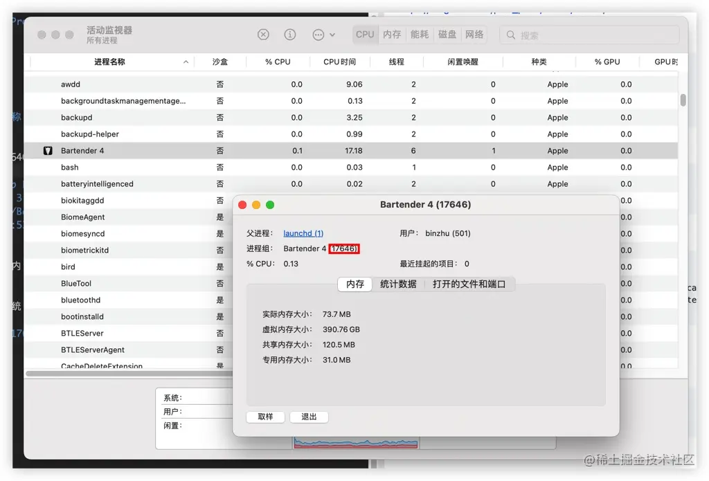 501 17646 1 0 3:24下午 ?? 0:14.13 /Applications/Bartender 4.app/Contents/MacOS/Bartender 4