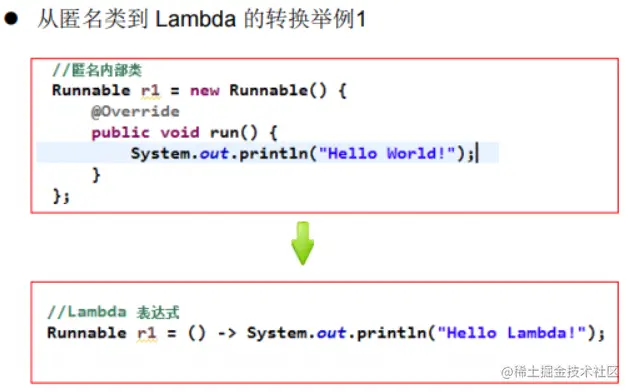 * 6. 所以以前用匿名实现类表示的现在都可以用Lambda表达式来写。