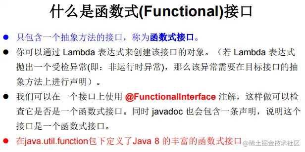 带有 @FunctionalInterface 且 只有一个抽象方法的接口
